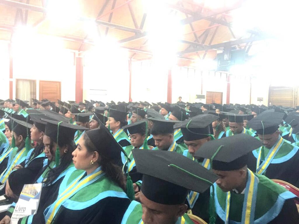 Serimonia Graduasaun ne’e hala’o iha Sentral Koreiu Dili (CCD), Segunda-feira (16/12/2024), partisipa husi civitas Adakemika IOB, inan-aman, autoridade balun no konvidadus sira.