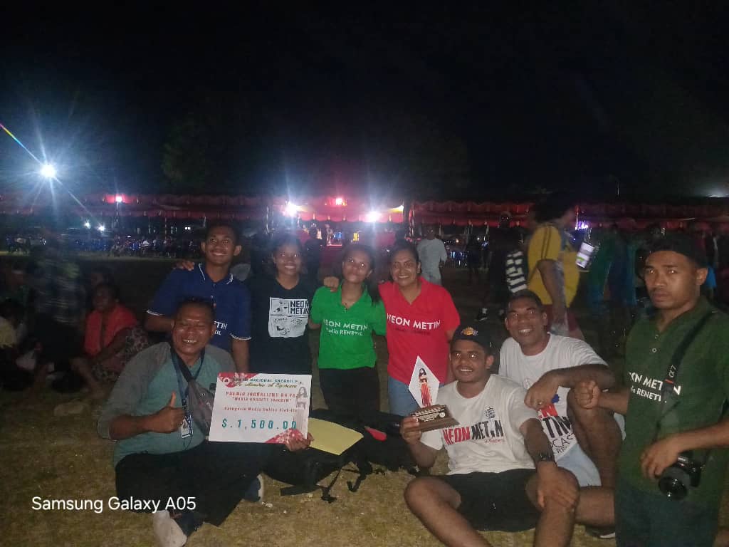 FOTO HAMUTUK : Manan na’in premiu Maria Goreiti ba kategoria Jornalizmu Paź, ne’ebe realiza husi CNC Timor-leste, hasai foto hamutuk, hafoin simu premiu ne’e iha Oe-cusse, Kuarta (16/10/2024), ambiente selebrasaun Loron Nasional Liberdade Imprensa. Foto LP/Selestinho