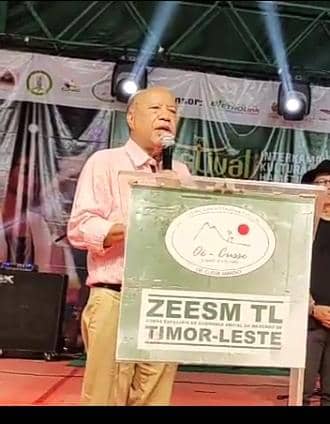 Prezidente Autoridade RAEOA hateten ida ne’e iha nia diskursu hafoin fahe premiu Jornalismu da Paz Maria Goreti Joaquim iha Festival Fronteira 2024 Oebau Oekusse Kuarta Feira (16-10-2024)tuku 9:45 kalan OTL.
